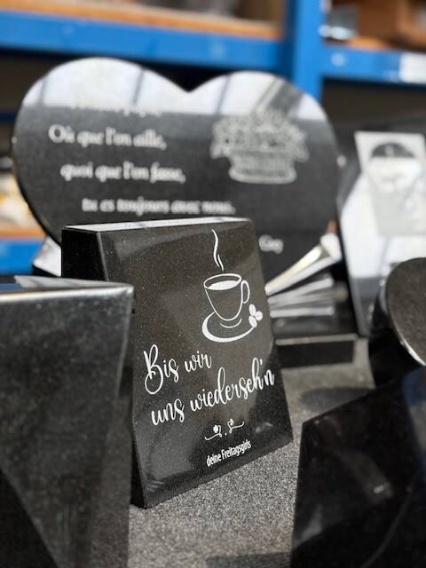 Door onze flexibiliteit en korte lijnen kunnen we snel schakelen, en bieden we oplossingen op maat van eenvoudige naambordjes tot uitgebreide gedenkstenen met fotokeramiek en reliëfgravure.